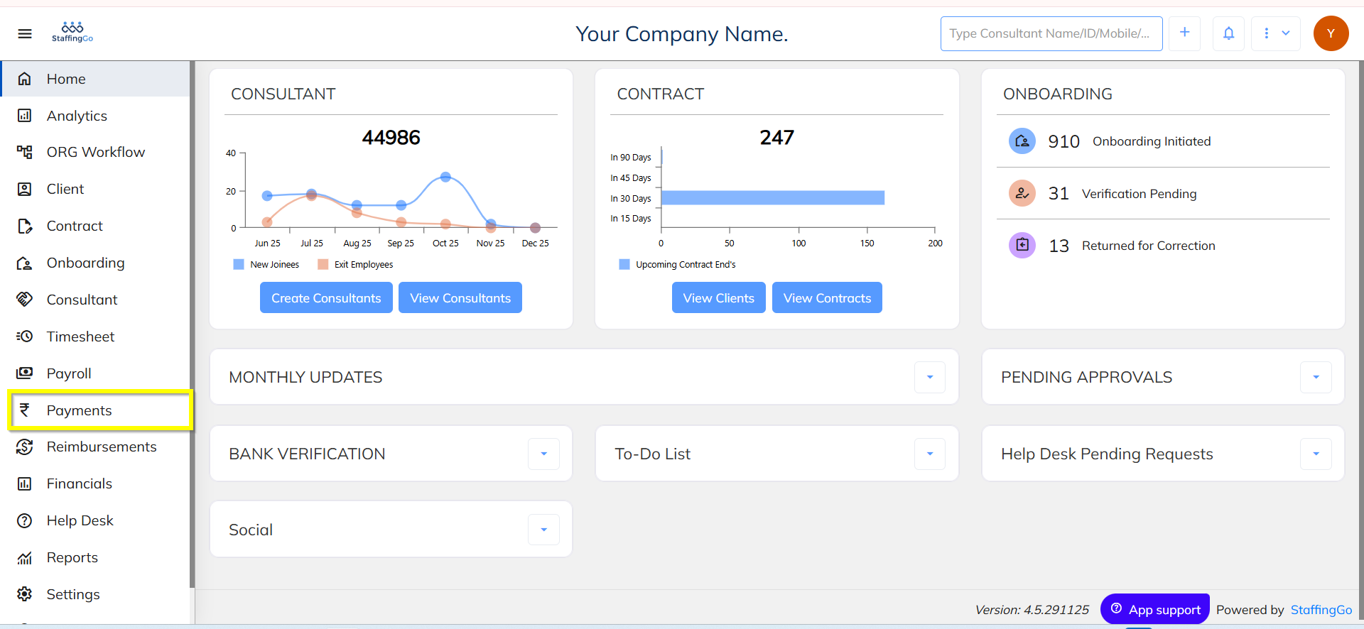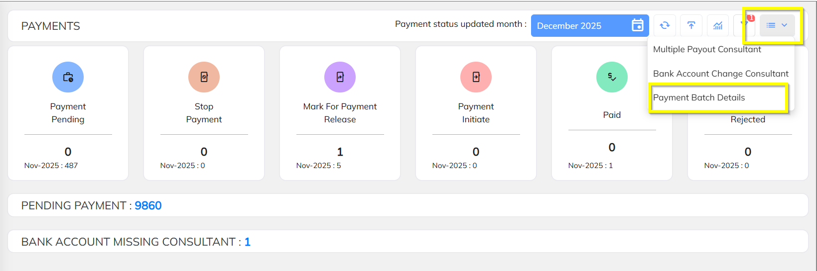 Inside the Payments dashboard, click the List / Menu icon on the top-right corner.