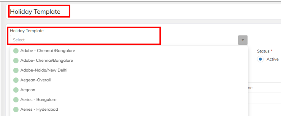 - Navigate to Setting List >>Staffing Template >> Holiday >> Choose the already exists holiday template which is available in the Holiday template drop-down .