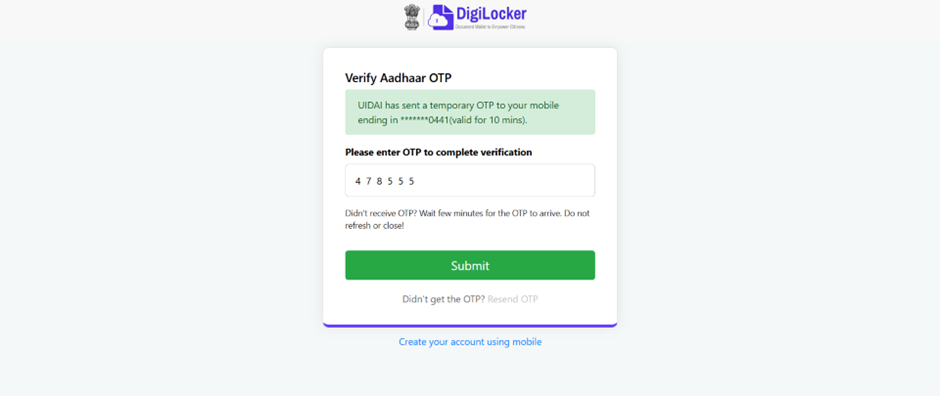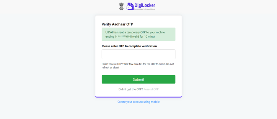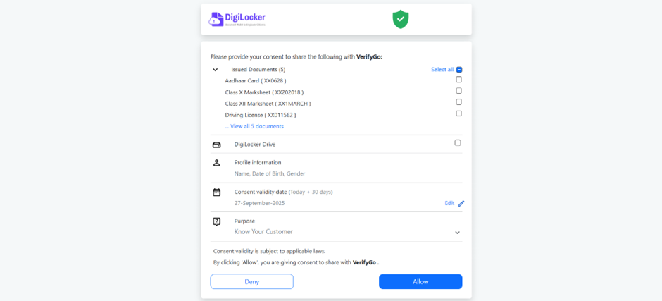 The Aadhaar eKYC verification through DigiLocker allows organizations to validate employee Aadhaar details in a secure, paperless way.