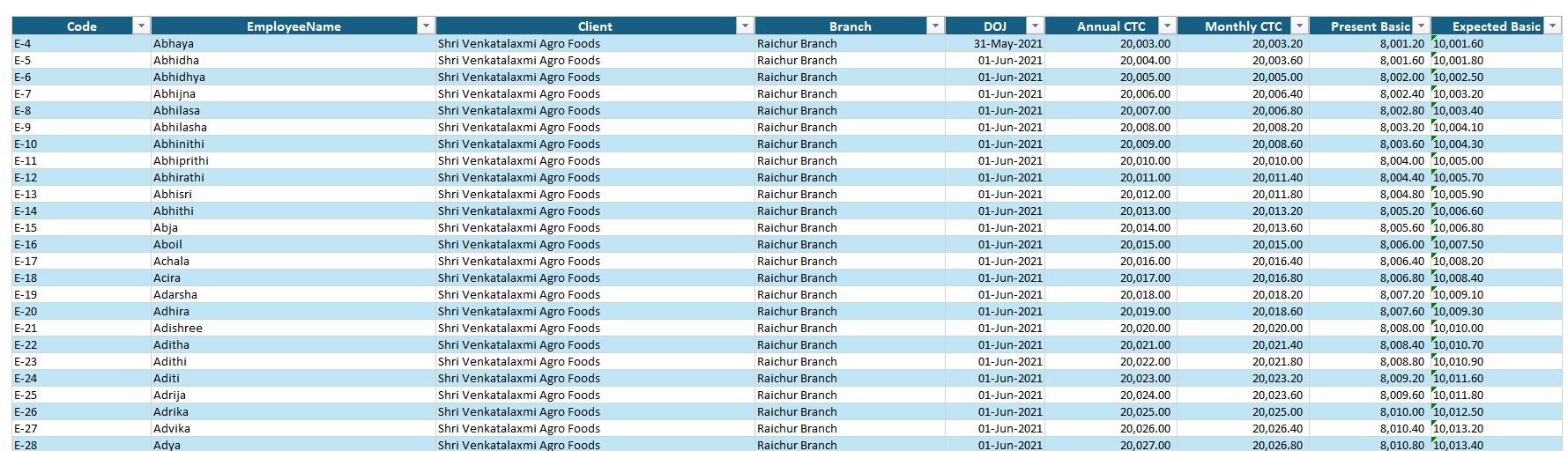 Employee Salary Structure (Salary Code-based)