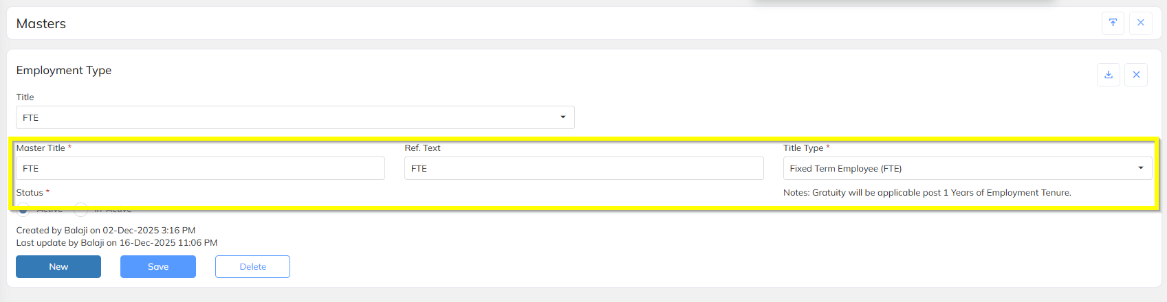 Employment Type now displayed in F&F Basic Details