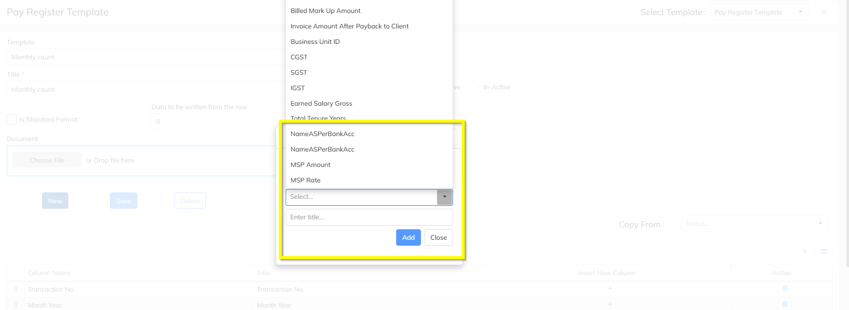 Supported MSP Amount & Percentage columns in Dynamic Pay Register