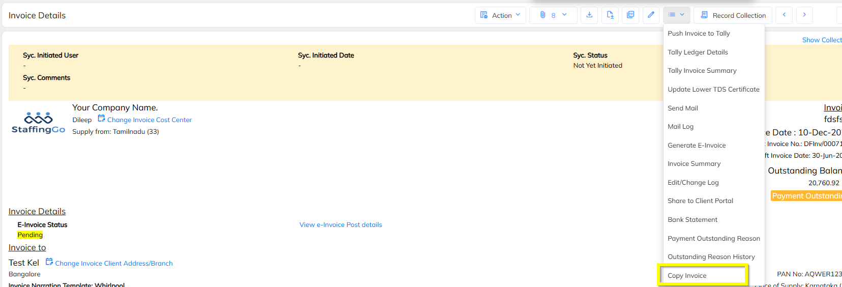 Supported Invoice Copy option