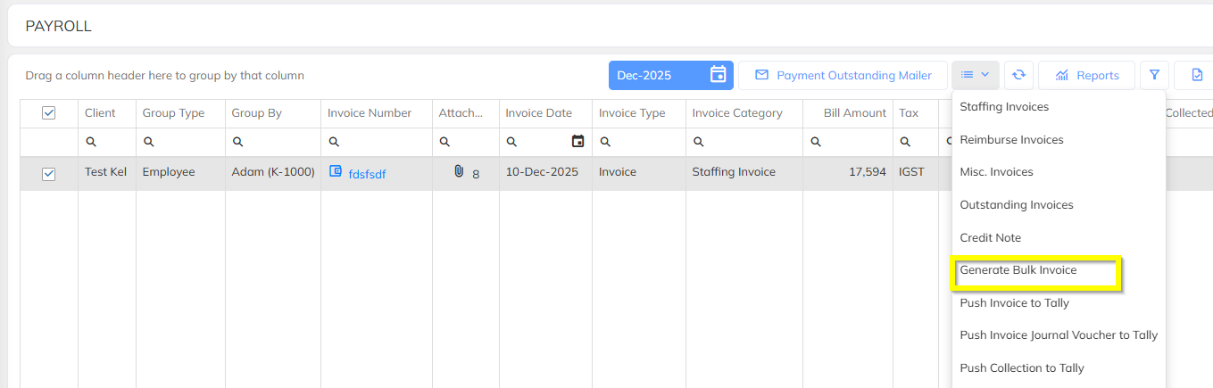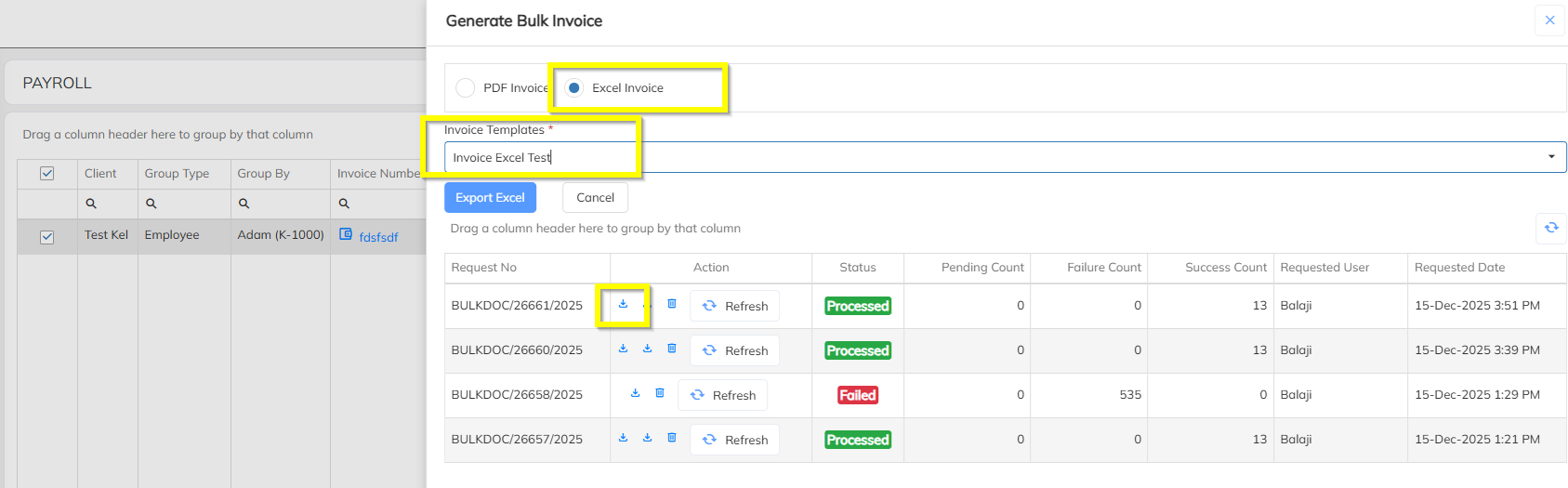 Supported Invoice Excel Bulk Download