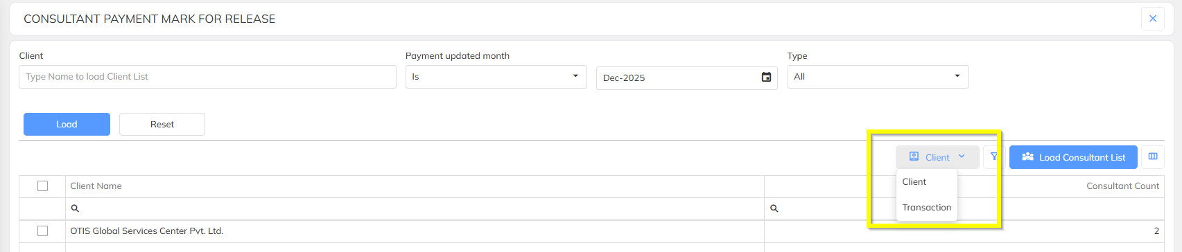 Transaction-level filter added in Consultant Payment – Mark for Release
