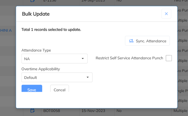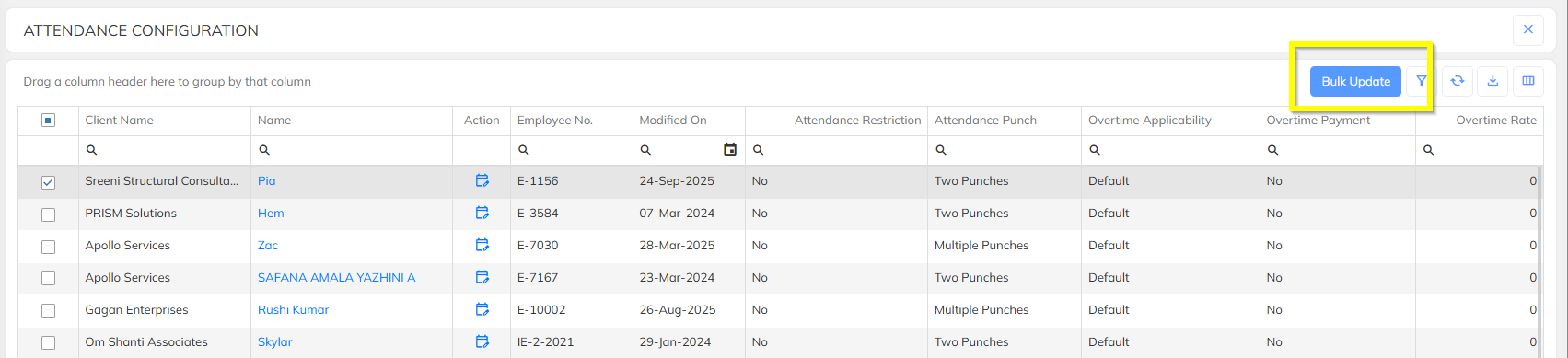 Supported bulk update of Attendance Configuration