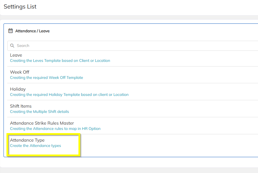 Attendance Type setup configurable per Client