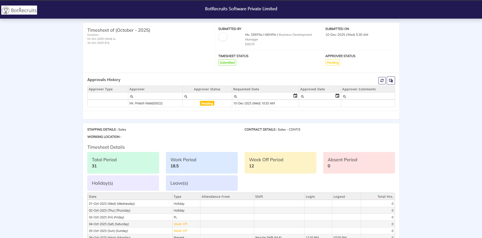 Timesheet Approver Page UI aligned with ESS Timesheet View