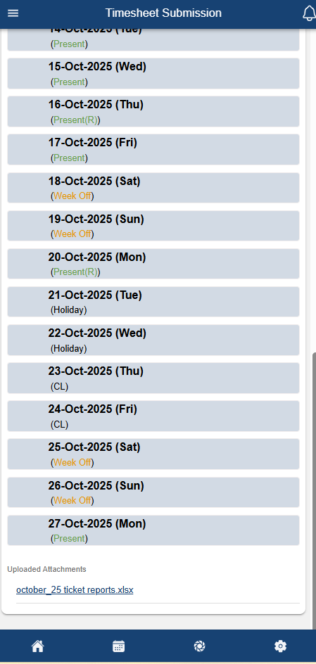 Attachment visibility supported in Mobile (Timesheet Submission)