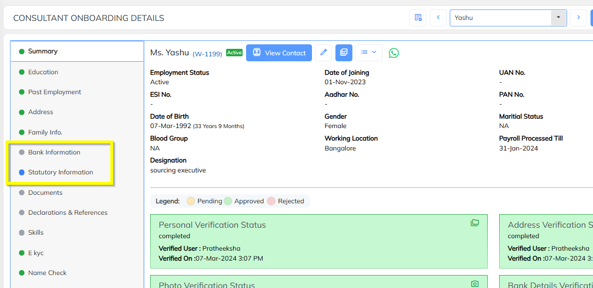 Statutory Information supported as part of onboarding