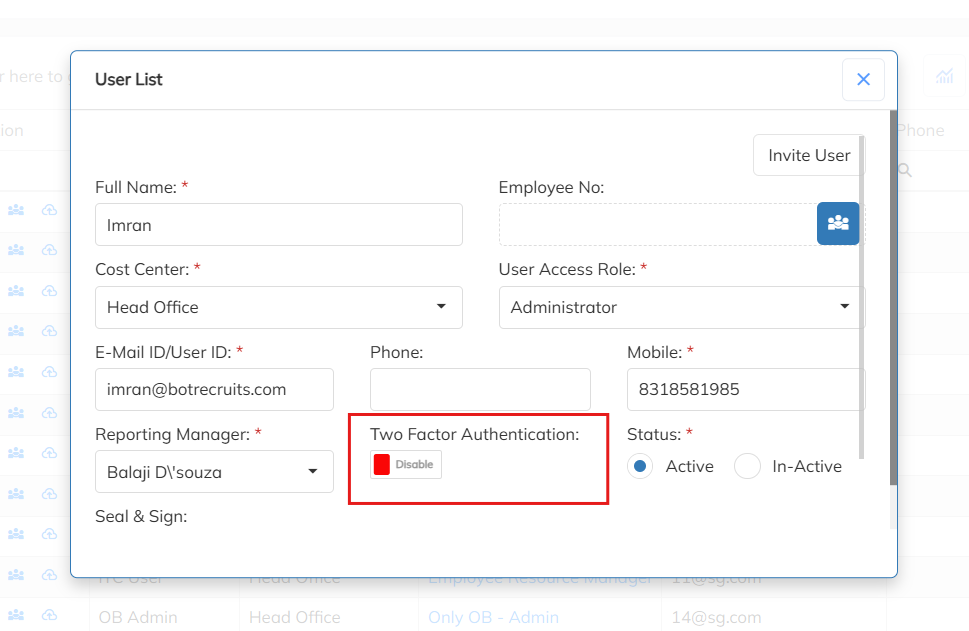 Two-Factor Authentication supported at User Creation Level
