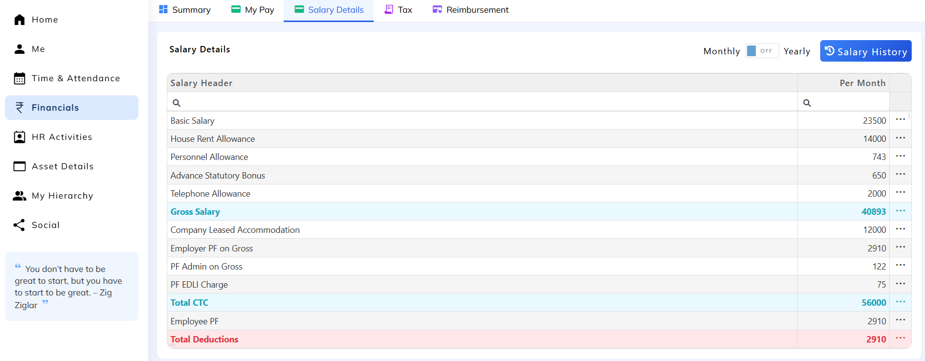 Annual & Monthly Salary Details displayed in ESS
