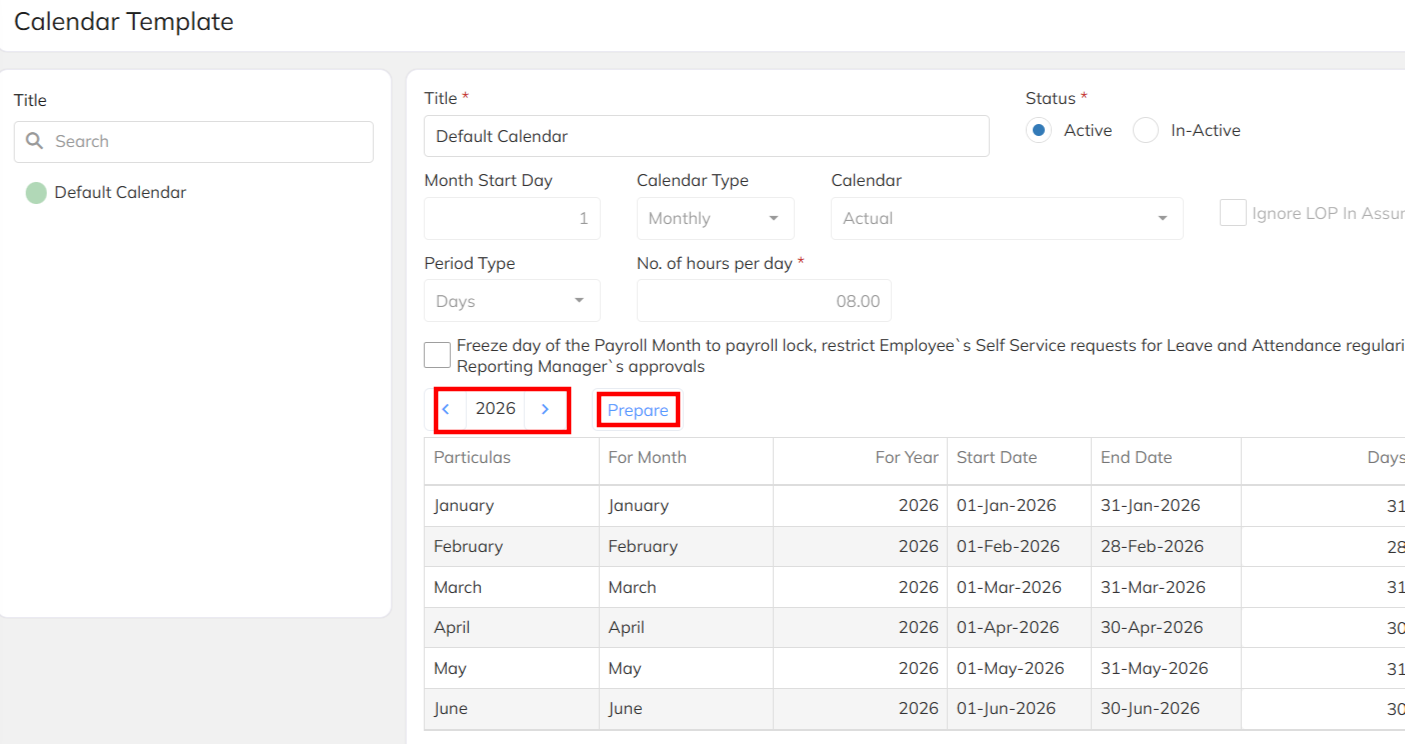 - Employee already mapped calendar will get extend with with 2026 . No changes in the days. & configuration.