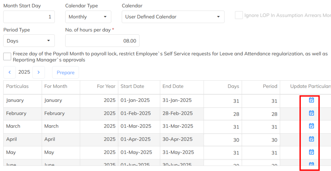 - If the Calendar is user is user defined , Once the calendar has been prepared using the update days option set up the expected days calendar days details.