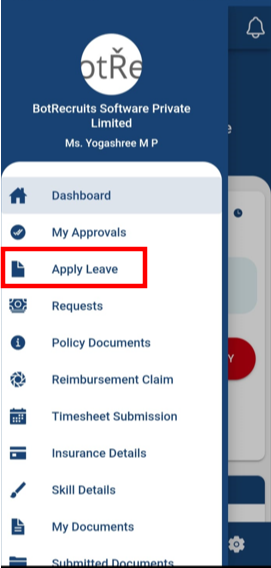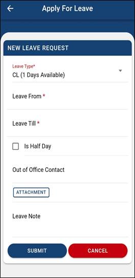 - For Mobile App Refer the attached screenshot to Leave request.