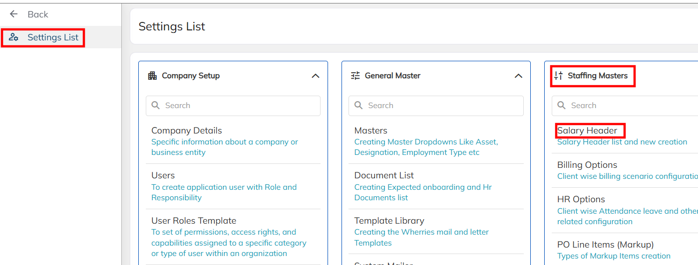 - Navigate to Setting List >>Staffing Master >> Salary Header >> Select the specific salary header which are not applicable to ESI.