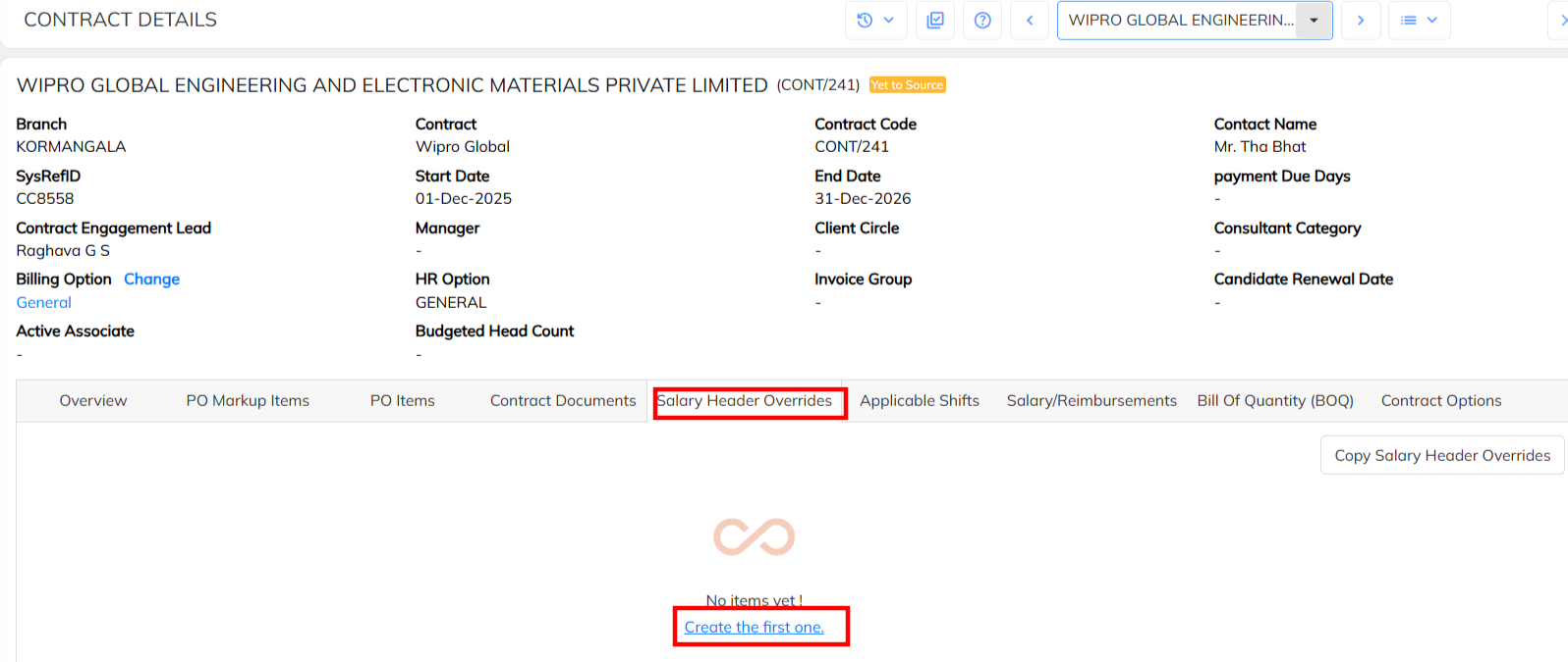 METHOD 2: If the Salary header configuration for specific client level follow the configuration set up under contract level.