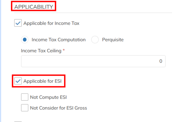 - Disable the Applicable for ESI option functionality configuration and save the salary header. Based on this configuration only Applicable for ESI enabled salary header consider for payroll for ESI computation. ESI applicability disabled salary header will not consider for the ESI computation.