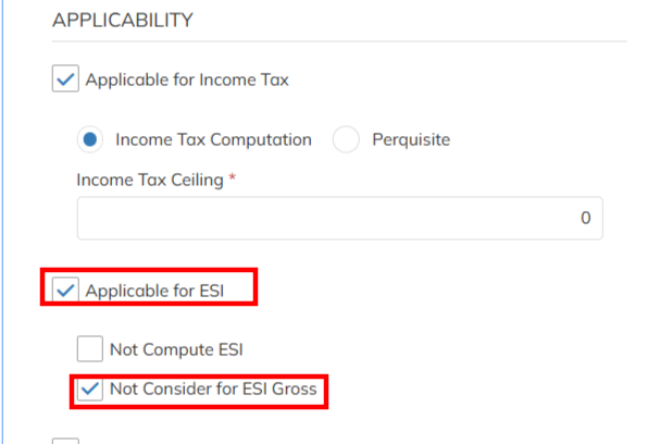 - If the Salary header applicable for ESI but not to consider for the ESI Gross amount in order avoid the ESI not applicability based on ESI gross amount disable the Not consider for ESI Gross configuration and save. According to the configuration salary header will consider for ESI computation and same amount will not consider for the ESI gross.
