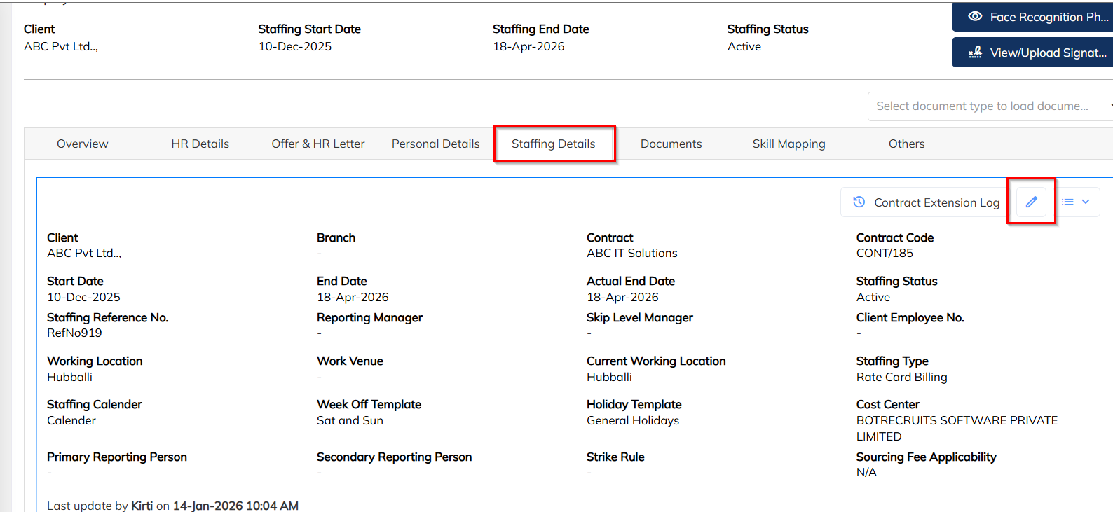 Open the Employee Profile>>Navigate to the Staffing Details tab>>Click on the Edit (✏️) icon>>Update the Start Date with the correct date>>Click Save.