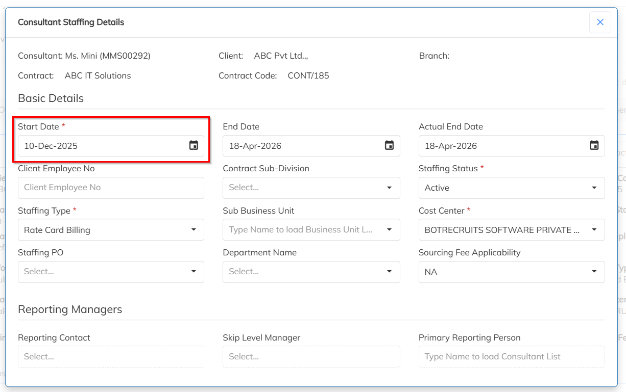 Step 1: Update Start Date in Staffing Details