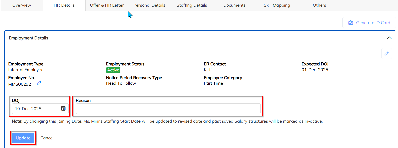 Step 2: Update DOJ in HR Details