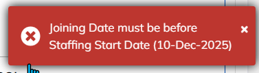 Ans: The date must be first changed in Staffing details .