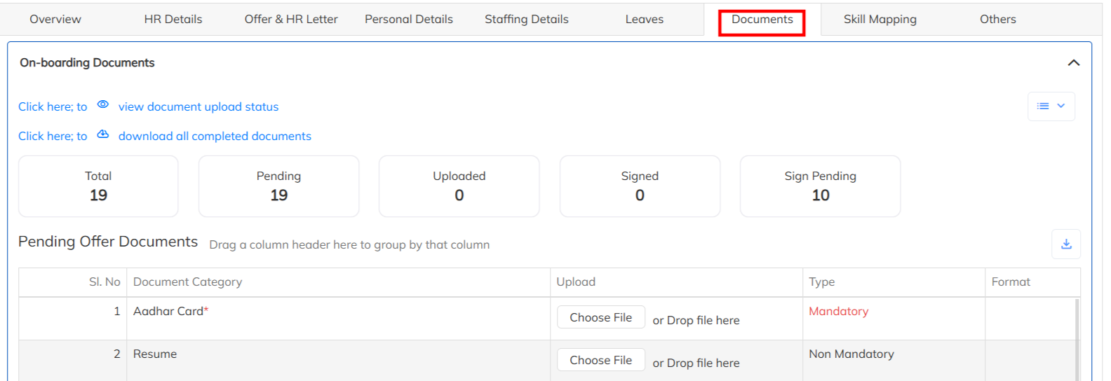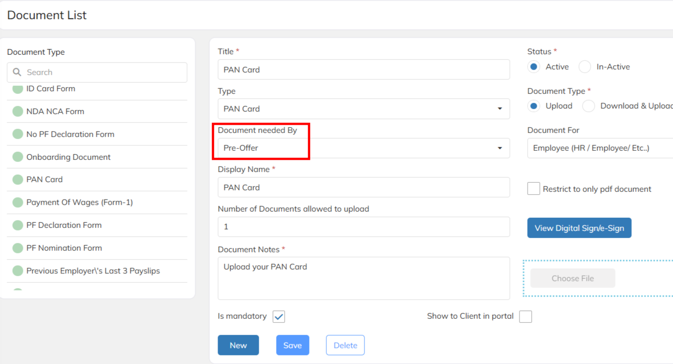 - Configure the Pre Offer documents . Example : Aadhar, PAN, Resume etc..