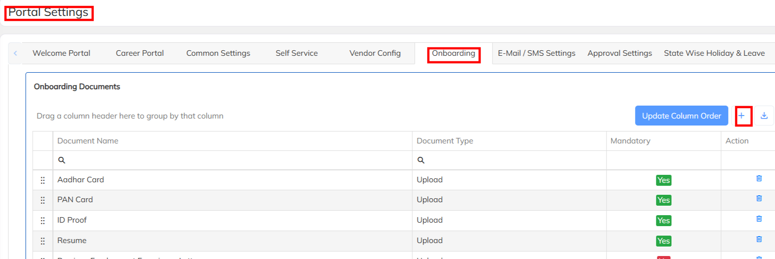 - Navigate to >>Setting List >> Company Set up >>Portal Setting >>Under Onboarding add the all pre-offer documents which has been configured under documents list