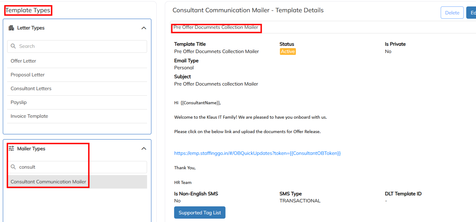 - Use the mentioned link in the mailer template to get the documents updating link to employee (https://emp.staffinggo.in/#/OBQuickUpdates?token={{ConsultantOBToken}})