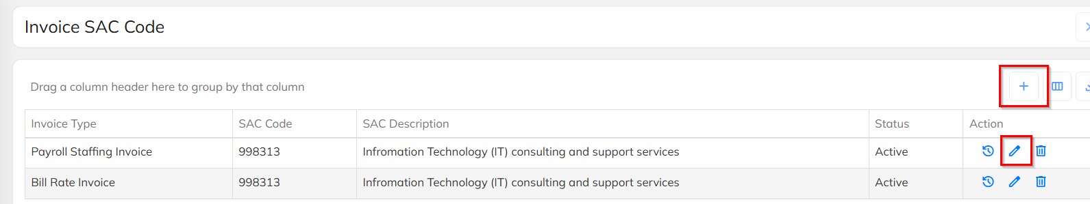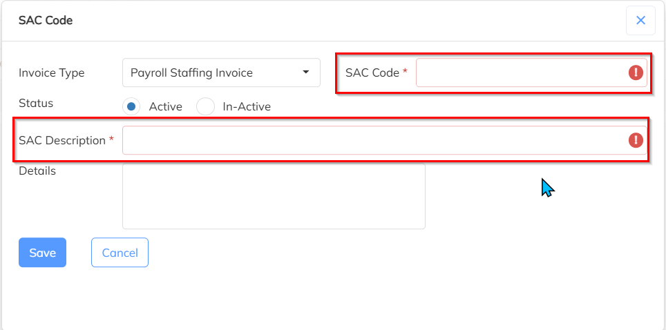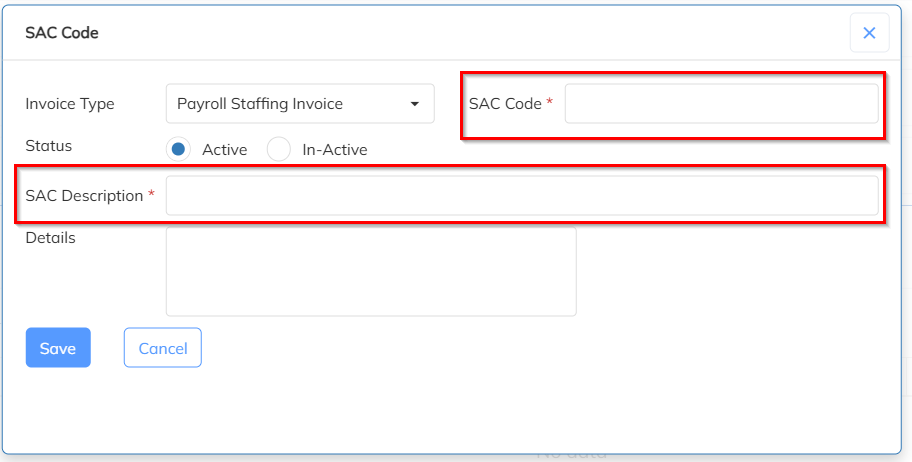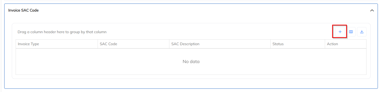 Click on the ‘+’ (Add) icon >>Enter the SAC Code number and Description>>Click on Save to apply the changes.