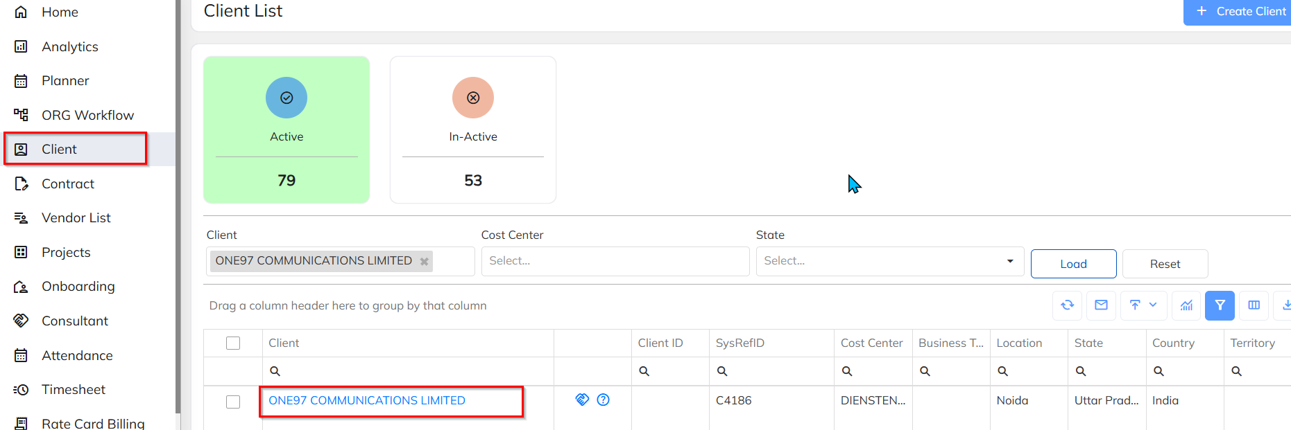 Go to the Client Module>>Select and open the required Client