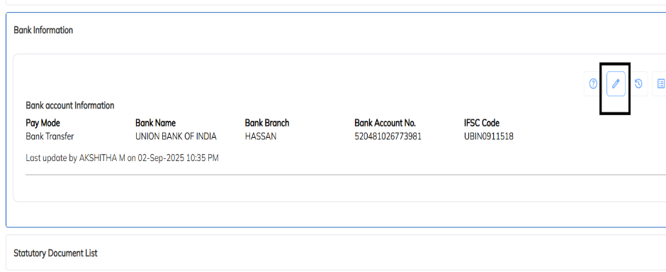 HR Details → Bank InformationClick on the Edit option.