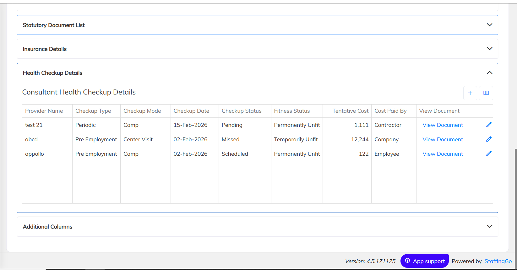 A new section has been introduced to capture and maintain Employee Health Check-Up details within the employee profile.