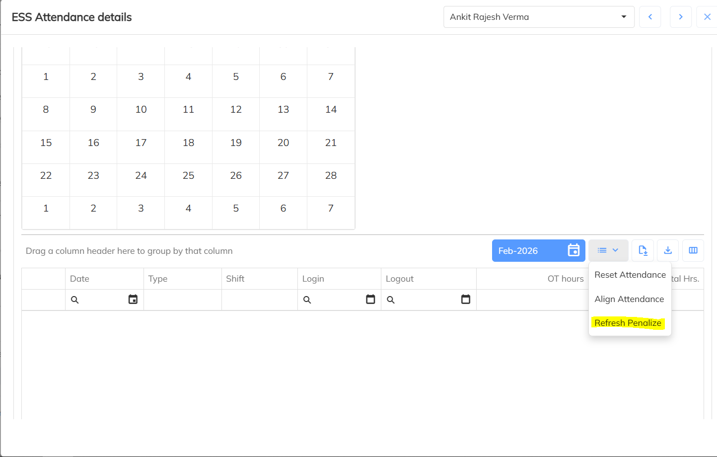 7. HR Toggle Option – Calendar View
