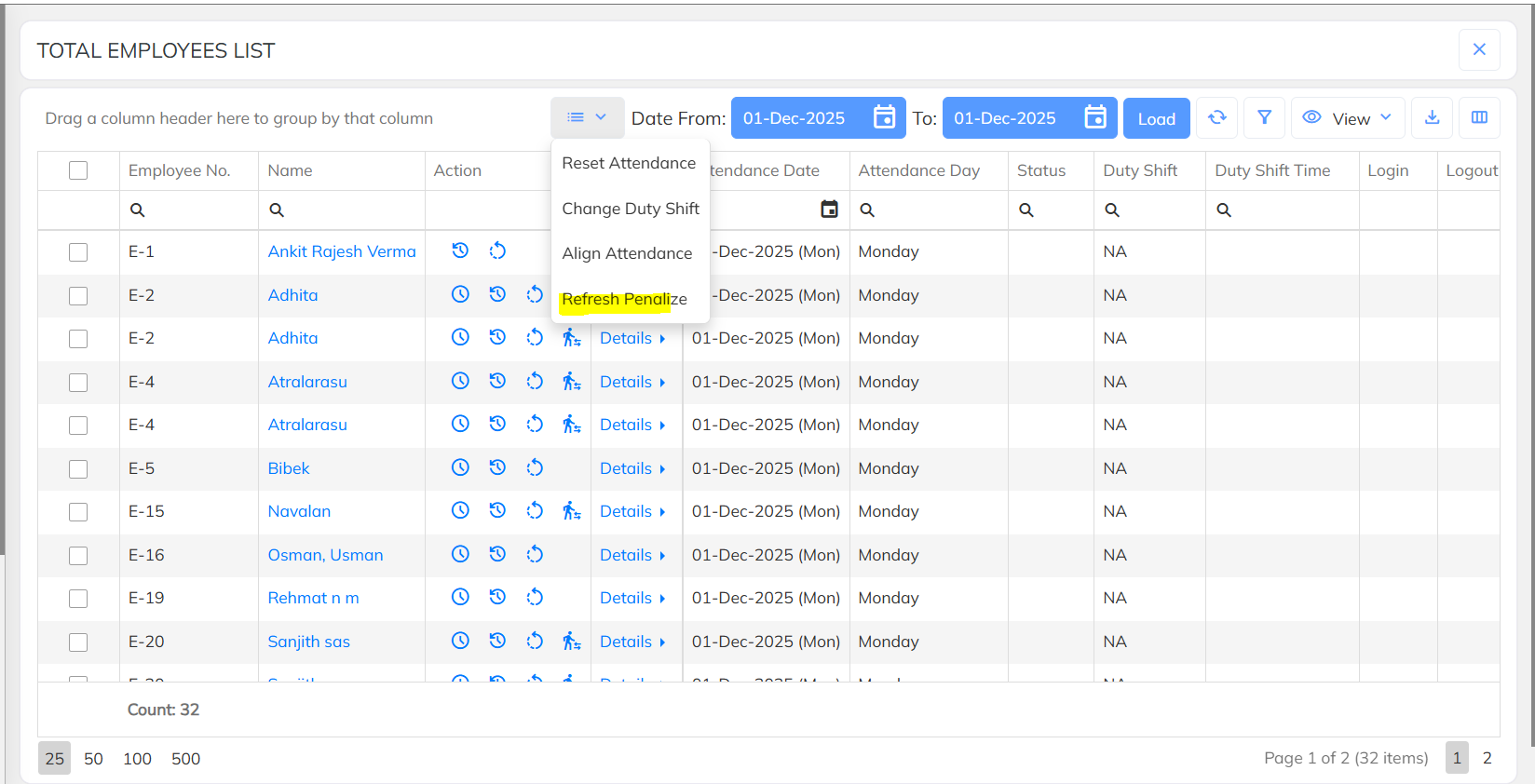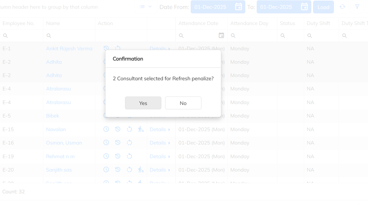 6. Core Application – Refresh Button Added (Penalize Section)