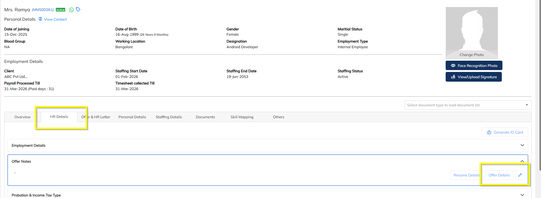 Navigate to Employee Offer Details.