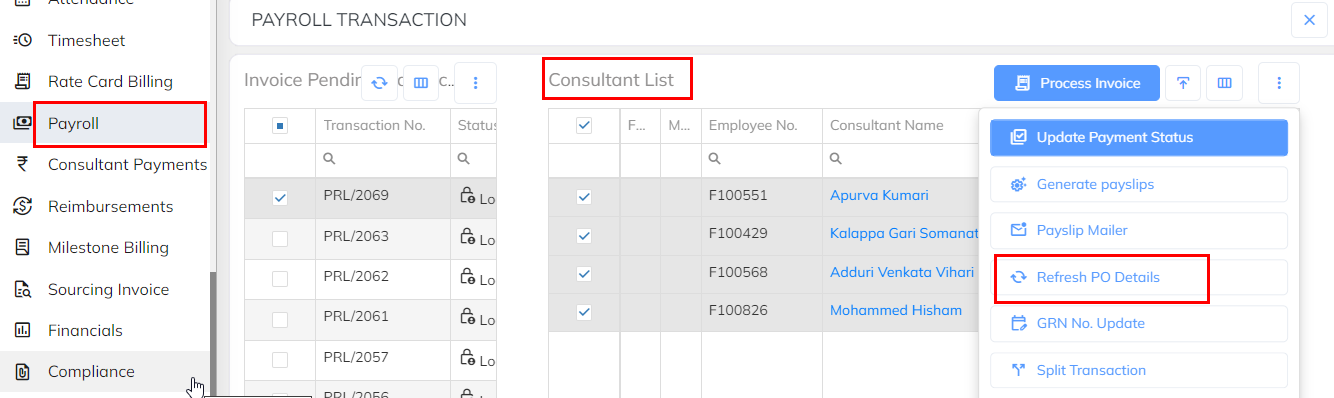 The purpose of this SOP is to explain the process for refreshing the Purchase Order (PO) in the system after mapping the PO to an employee. The PO Refresh functionality ensures that the latest PO details are updated and reflected correctly in payroll and rate card processing.