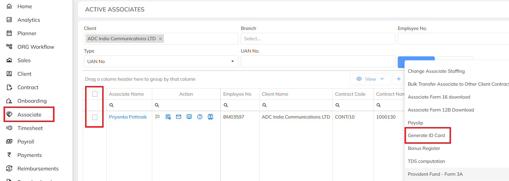 - Go to: Associate/Consultant/Employee Module → Employee List
