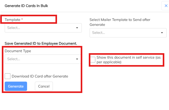 - Document Type : Choose the specific documents to save the generated ID card in the application.